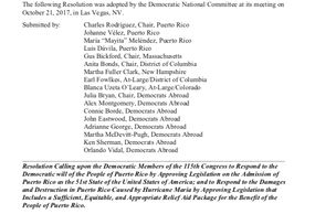 La siguiente Resolución fue adoptada por el Comité Nacional Demócrata en su reunión del 21 de octubre de 2017, en Las Vegas, NV